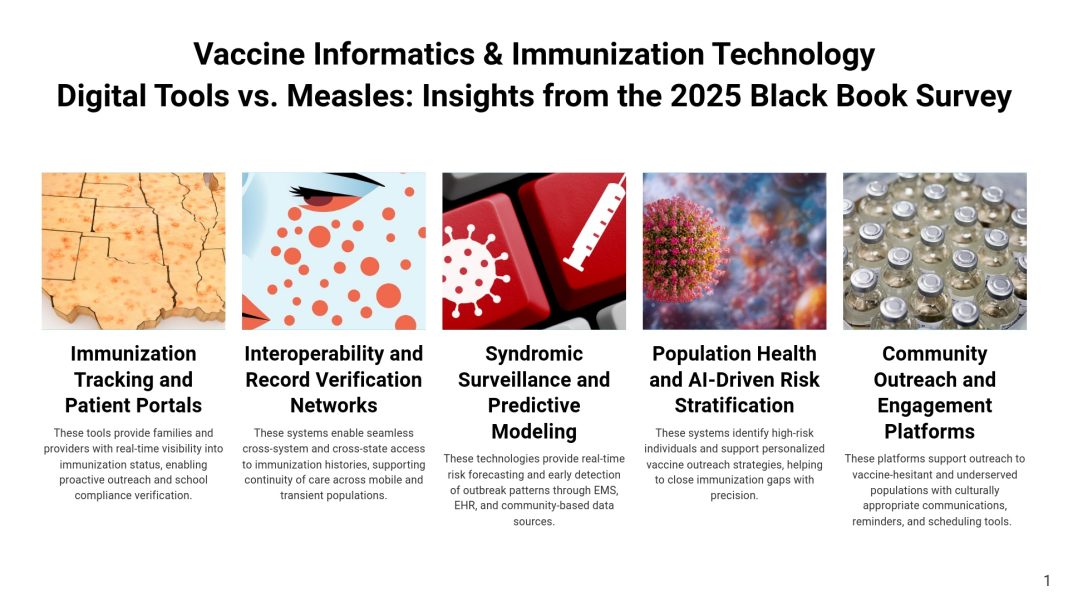 ATLANTA, GEORGIA / ACCESS Newswire / April 23, 2025 / Black Book Research today announced the release of its comprehensive 2025 Black Book of Vaccine Informatics and Immunization Technology. The study originated as a regional initiative commissioned by a major Texas health system to assess the effectiveness of vaccine IT infrastructure during early measles case surges. As measles outbreaks escalated across the South-Central United States, the research effort expanded nationally to capture the evolving role of digital technologies in immunization management and outbreak response.