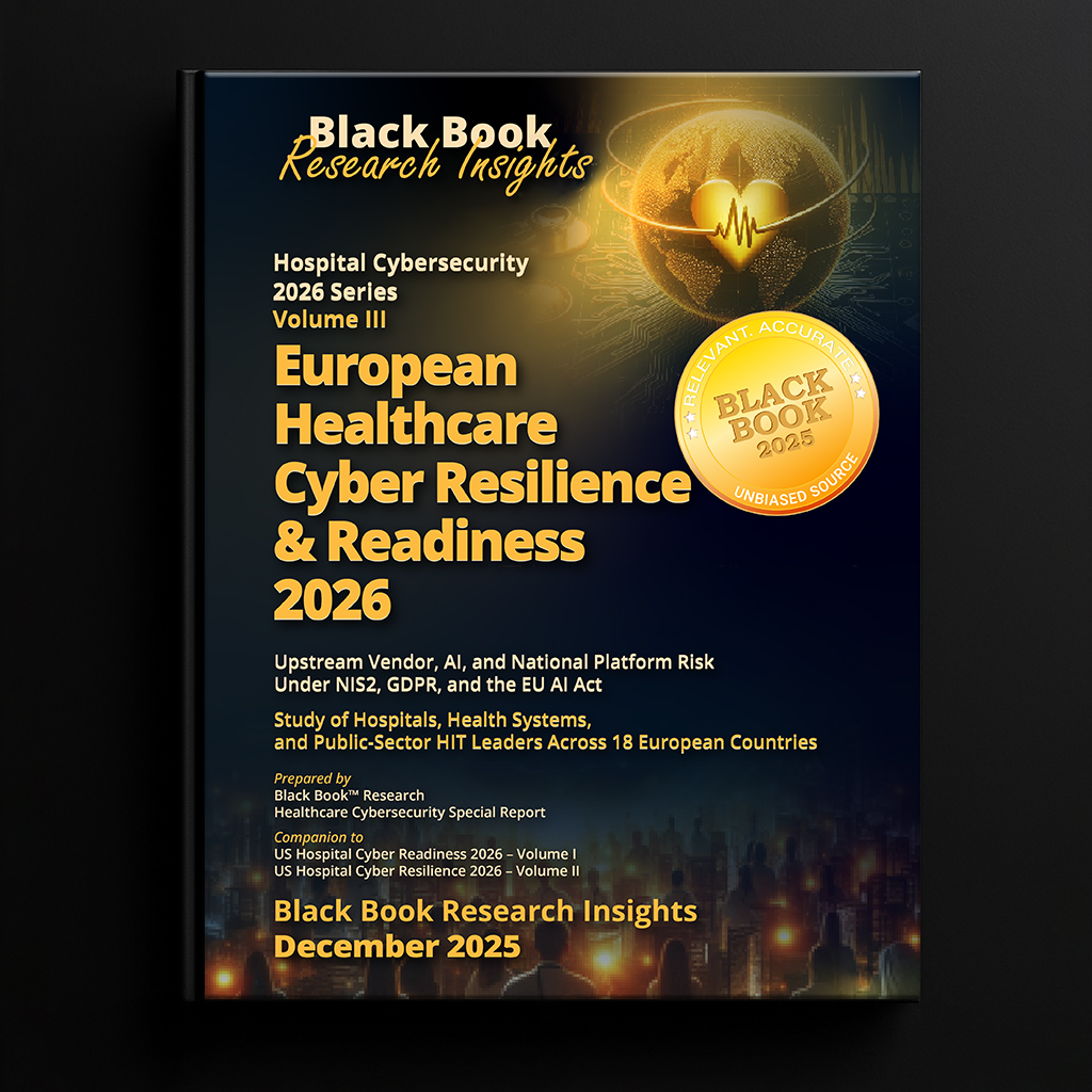 Europe Cybersecurity in Healthcare 2026 – Upstream Vendor, AI, and National Platform Risk under NIS2, GDPR, and the EU AI Act is available free of charge to the healthcare industry. The report, part of Black Book’s Hospital Cybersecurity 2026 series, can be downloaded now from Black Book Research at https://blackbookmarketresearch.com/european-healthcare-cyber-resilience-and-readiness-2026