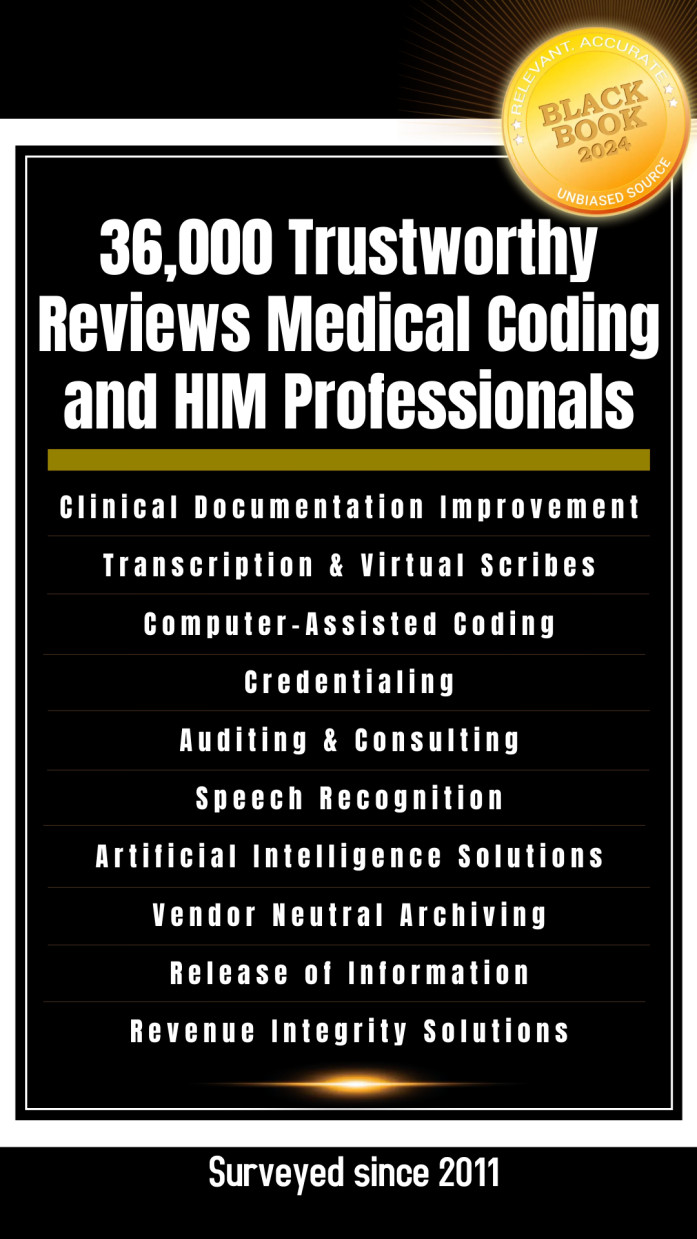 Black Book™, recognized for its expertise in surveying medical coding and health information management users for the past decade, maintains complete independence, with no financial interest in the vendors it evaluates. Since 2000, it has polled vendor satisfaction across 30+ industries, and since 2009, it has surveyed over 2.5 million healthcare software and services users. Known for unbiased, crowd-sourced research, Black Book gathers insights from IT professionals, clinicians, financial leaders, and administrators. For detailed methodology and ranking data, visit www.blackbookmarketresearch.com or contact [email protected].