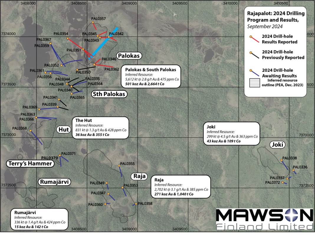 VANCOUVER, BC / ACCESSWIRE / September 17, 2024 / Mawson Finland Limited (“Mawson” or the “Company“) (TSXV:MFL) is pleased to announce new drill results from 8 drillholes at the Palokas zone of mineralization which were drilled as part of the Company’s 38-hole 2024 winter drilling campaign on the Company’s wholly-owned Rajapalot gold-cobalt project in Finland (see Table 1 and Figure 1 in Schedule “A” hereto).