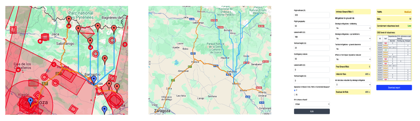 • SAIL Calculation Engine: Quantifies air and ground risk across delivery corridors using population density, terrain, and critical infrastructure data.