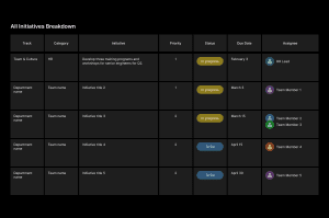 When developing initiatives, it’s essential to make them SMART (Specific, Measurable, Achievable, Relevant, Time-bound). Additionally, clearly define ownership and accountability for each task, ensuring everyone knows their role in the puzzle.