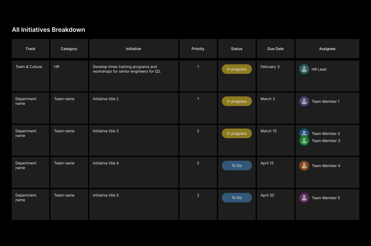 A simple and effective template for structuring your initiatives could look like the one provided below.