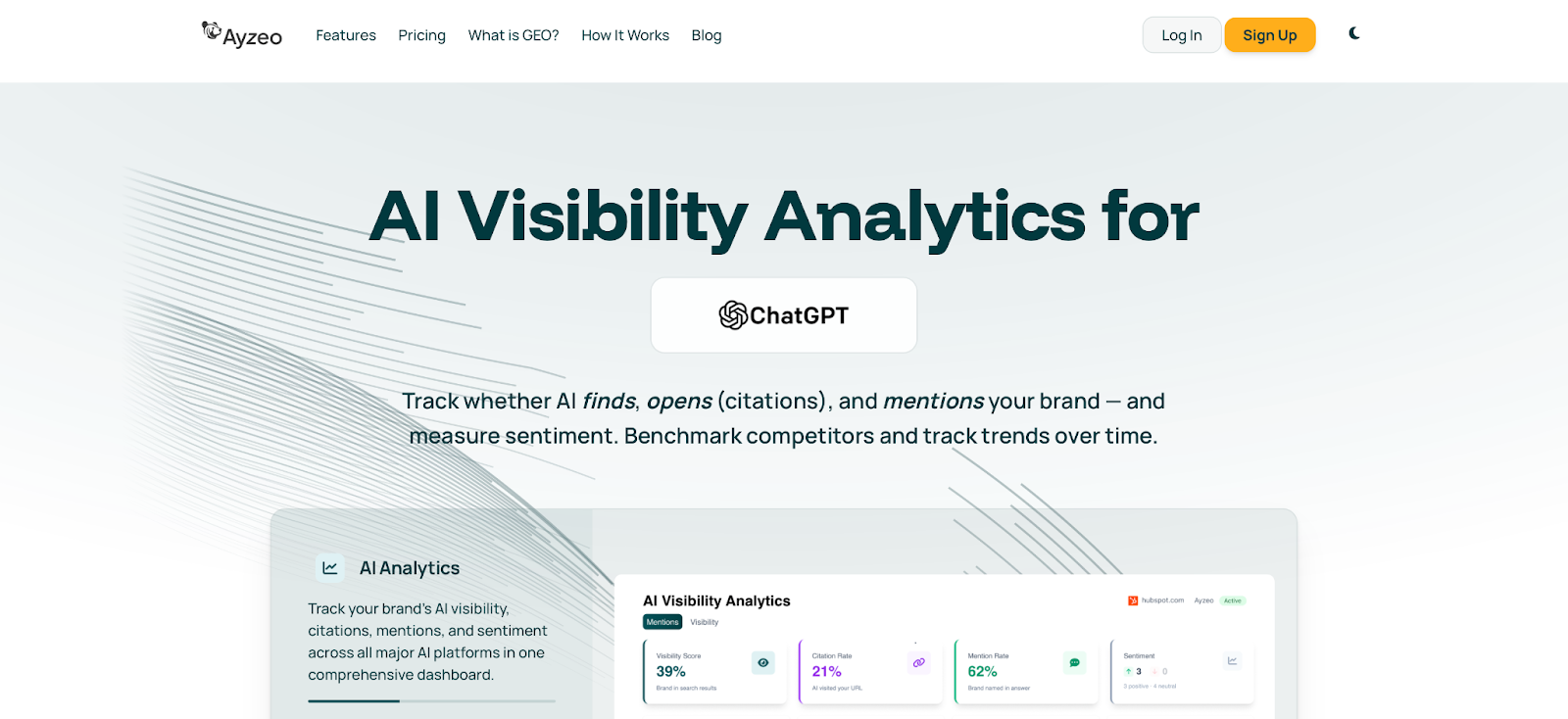 Ayzeo is an AI visibility and website optimization platform that analyzes how brands appear in answers from systems such as ChatGPT, Claude, Gemini, and Perplexity while also auditing traditional SEO performance. The platform measures AI visibility through metrics such as visibility, citations, mentions, and sentiment, then translates those signals into technical and content recommendations. It combines AI-driven discovery tracking with SEO diagnostics to highlight where competitors appear in AI recommendations and where visibility gaps exist.