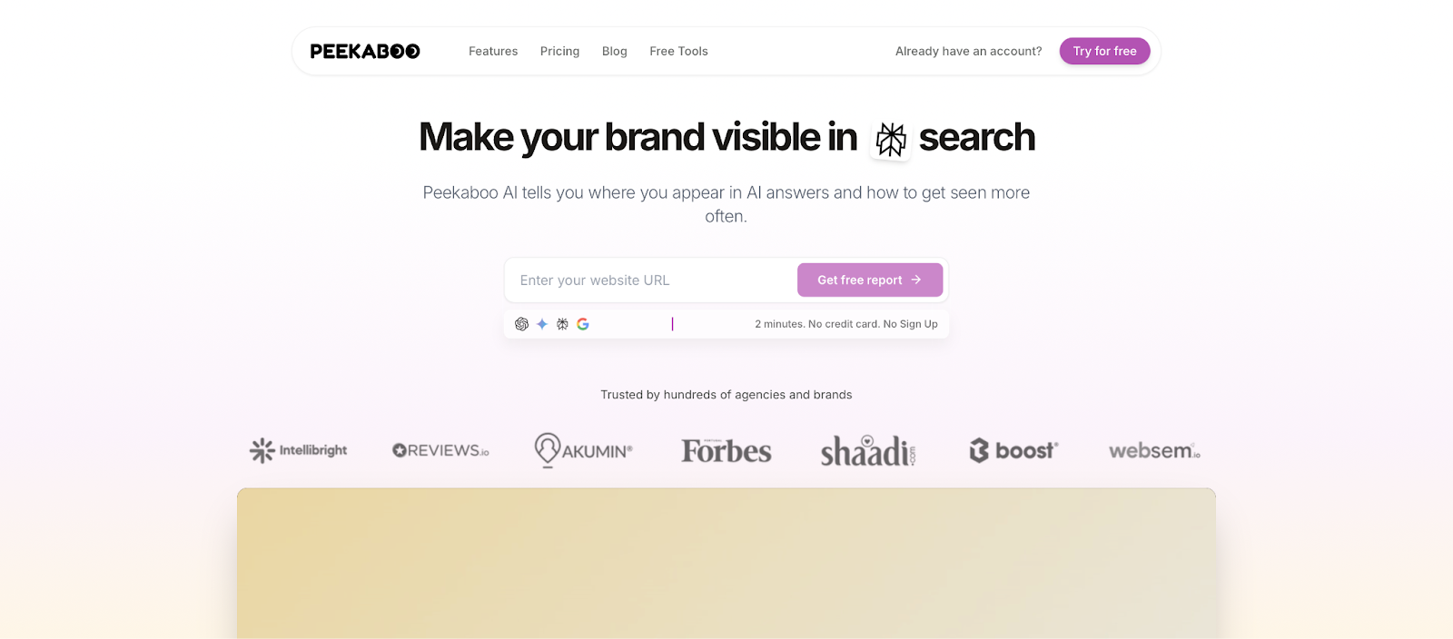 PeekaBoo is an AI visibility analytics tool that tracks how often brands are mentioned or cited in AI answers generated by systems such as ChatGPT, Gemini, Perplexity, Grok, and Google AI Overviews. The platform calculates an AI visibility score that benchmarks how frequently a brand appears in AI responses compared with competitors. It focuses on simple monitoring, gap identification, and recommendations rather than running a full GEO or SEO stack.