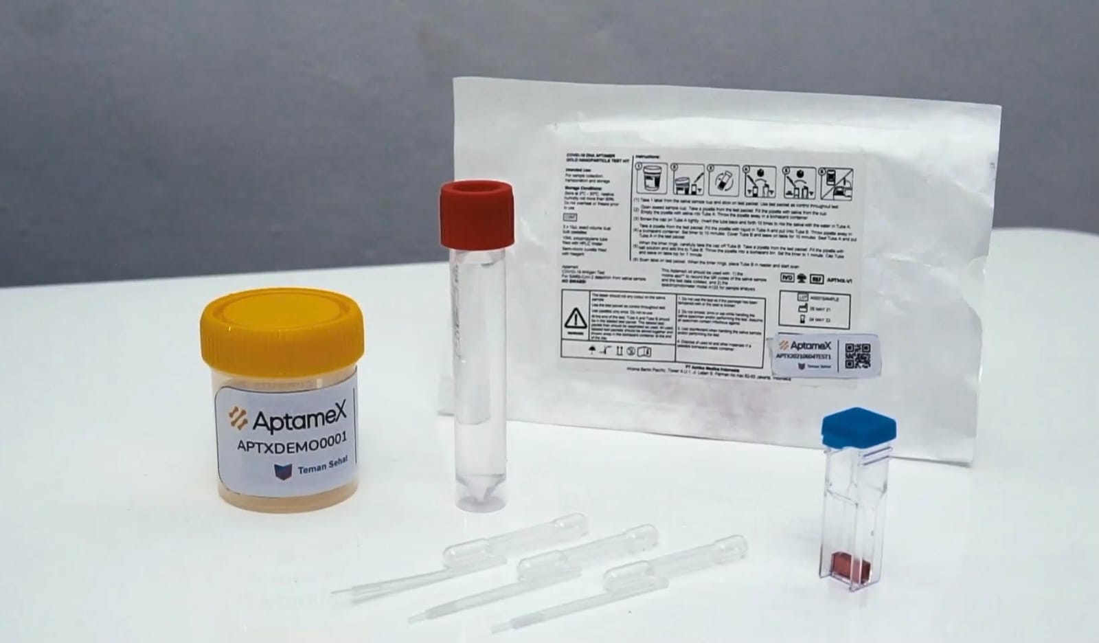 PT Achiko Medika Indonesia and PT Indofarma Tbk are delighted to announce the product and registration emergency use approval of its revolutionary diagnostic test for Covid-19, AptameX. The approval allows for immediate roll-out of the breakthrough DNA aptamer-based non-invasive testing kit, which enables access to low-cost and accurate Covid-19 testing for over 270 million Indonesians. Design and chemistry of AptameX allows for rapid scale-up of production, soon serving millions of people multiple times per month. The production of the AptameXtesting kit will start in September 2021.