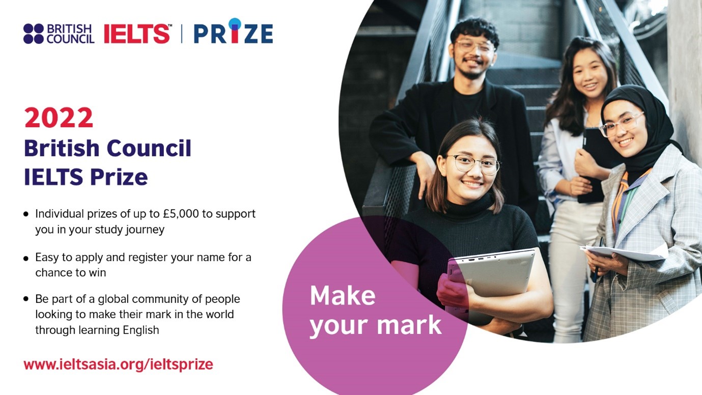 Applications for the British Council IELTS Prize (East Asia) 2022 will close at 17.00 on 15 July 2022. The winners will be announced in August 2022. For more details, please visit 2022 IELTS Prize official website. https://www.ieltsasia.org/ieltsprize