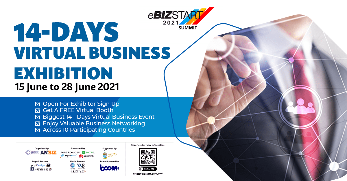 KUALA LUMPUR, MALAYSIA – Media OutReach – 8 June 2021 – eBizstart 2021 co-organised by E3Hubs and Anbiz together with the support from Penang State Government is set to take place from 15th of June 2021 to the 28th of June 2021. The event aims to provide opportunities for entrepreneurs around the world to showcase their business opportunities beyond borders through one single platform. The platform was developed in-house and powered by Boom.my.