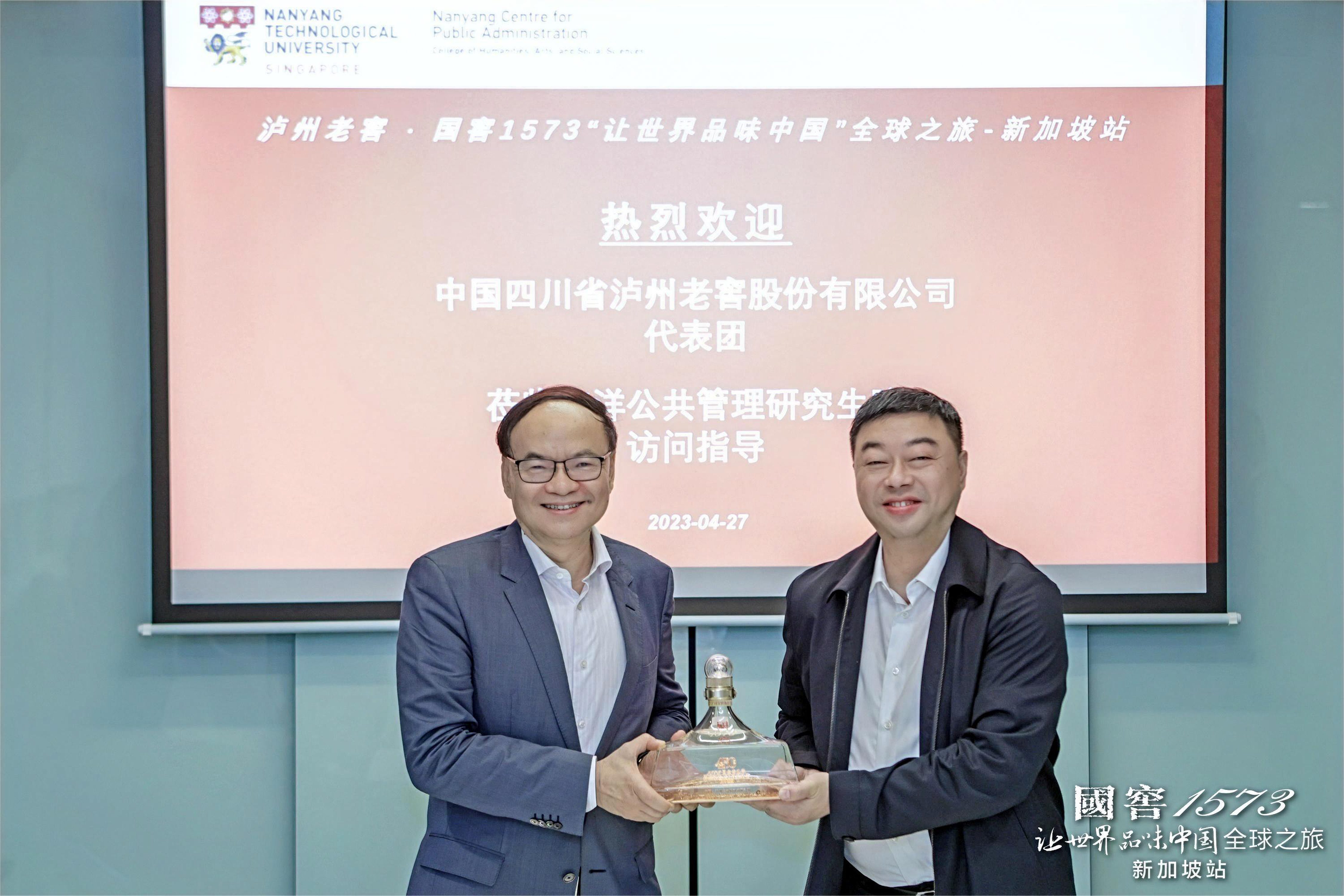 Lin Feng, General Manager of Luzhou Laojiao Co., Ltd., introduced China liquor and its liquor culture to attending professors and scholars at Nanyang University of Technology. On behalf of the company, he presented the “Guo Jiao 1573 · 450 Anniversary Commemorative Liquor Limited Edition” collection and Guo Jiao 1573 Collection jointly created by Chinese brewing master Liu Miao and contemporary art master Pang Maokun to Nanyang University of Technology in Singapore, Liu Hong, Associate Vice President of Nanyang Polytechnic University in Singapore, expressed gratitude and returned a precious gift.
