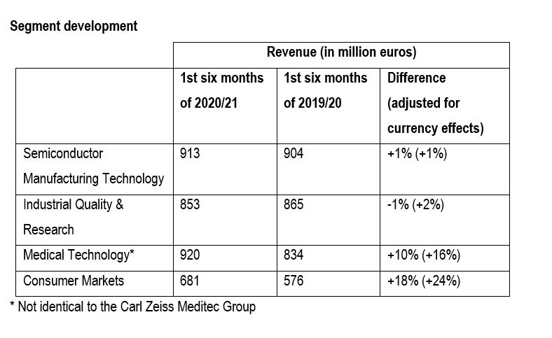 “Thanks to our broad portfolio, global structure and the exceptional dedication of our employees, we have successfully navigated through the COVID-19 pandemic,” said Dr. Karl Lamprecht, ZEISS President and CEO. “This has allowed us to get off to a good start in the first half of the new fiscal year. Our global investment strategy and high expenditure on research and development over many years are now paying off. We will be continuing to make these investments.”